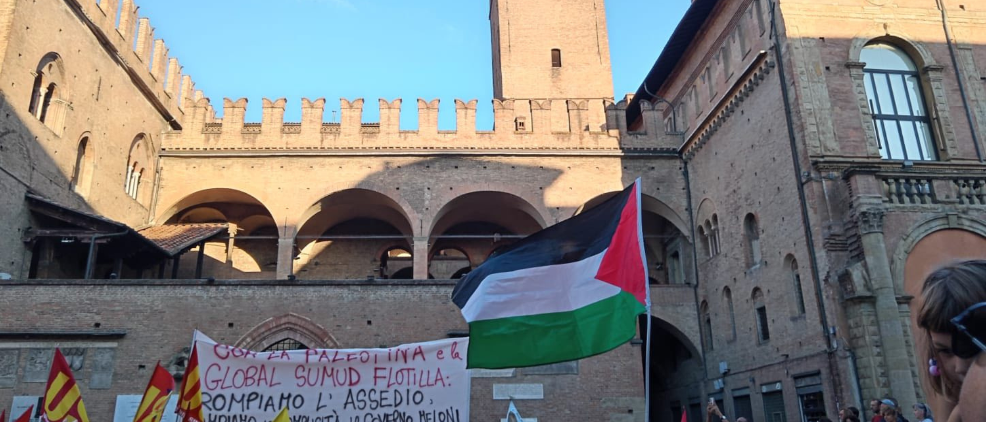 In piazza del Nettuno per chiedere di fermare lo sterminio del popolo palestinese, per sostenere la mobilitazione umanitaria lanciata dalla Global Sumud Flotilla e per esigere lo sblocco degli aiuti umanitari e la fine dell’occupazione militare di Israele in Palestina. Non resteremo in silenzio e saremo al vostro fianco.